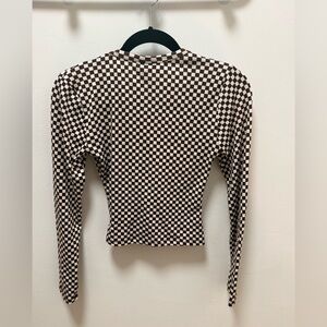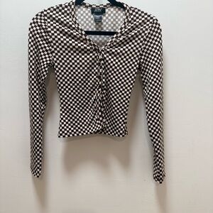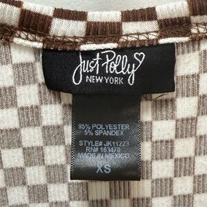 Just Polly checkered button ribbed cardigan size XS retro 70’s brown and cream