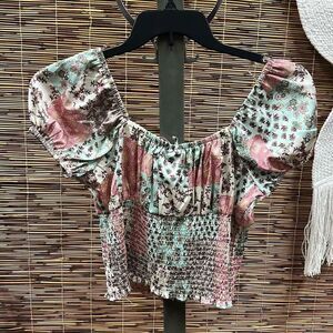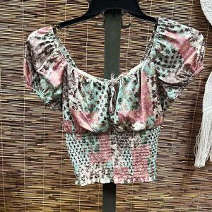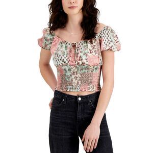 Just Polly Juniors' Puff-Sleeve Smocked Top