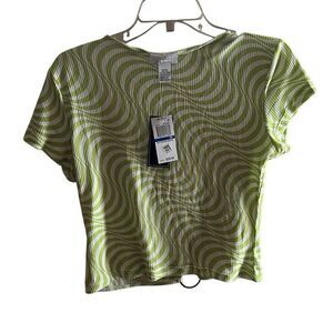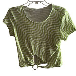 Just Polly Trendy Plus Size Flower Cutout T-Shirt - Green Wavy