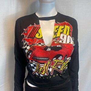 Just Ride Cut Out V-Neck Long Sleeve Cotton Tee - Black Size M RefFNB3