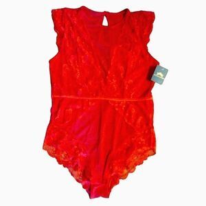 Just Sexy Barbados Cherry One Piece Lace Bodysuit Intimates Large NWT