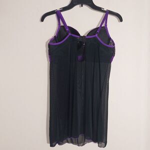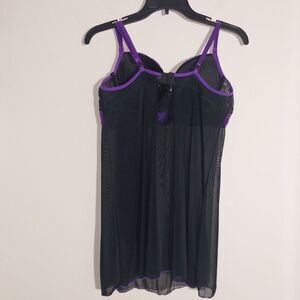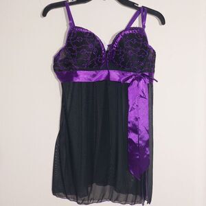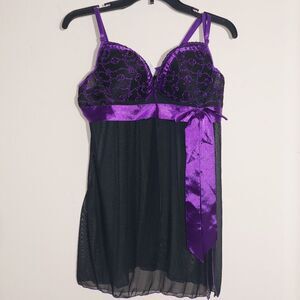 Just Sexy Women's Elegant Black and Purple Built in Bra Baby Doll Lingerie EUC