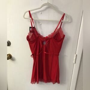 Just Sexy Women’s Red Lace Lingerie Keyhole Size XL Chemise Nightie Slip Cherry