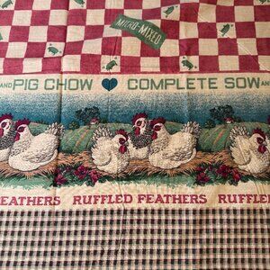 Just Shy 2 yards Vintage Chicken Pig Primitive Check Cotton Fabric
