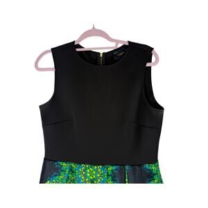 Just Taylor Black Green Fit & Flare Lined w/ Pockets Back Career Dress Size 10