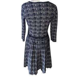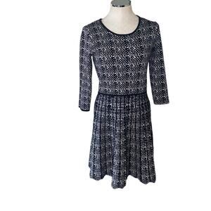 Just… Taylor Black White Jacquard Dotted Knit Fit & Flare A-Line Sweater Dress L