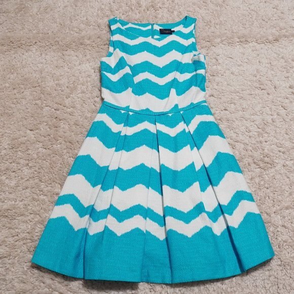 Just Taylor Chevron Dress White and Blue Size 4/S
