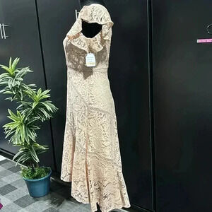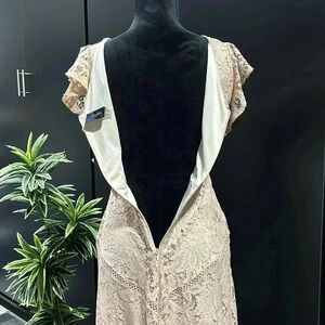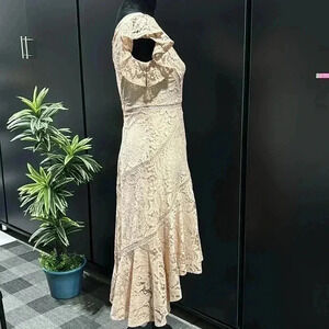 Just Taylor V-neck flutter sleeve lace,Hi/low ruffle,zip back, lined,zipper back