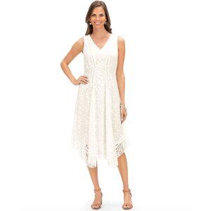 Just Taylor White Lace Handkerchief Hem Midi Dress Size 12 Wedding Bride Mother
