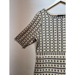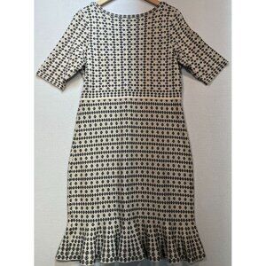Just Taylor Women's Fitted Midi Sweater Dress Knit Ruffle Hem Size XL Beige Geo