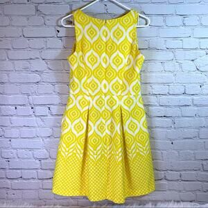 Just Taylor Yellow & White Fit & Flare Ogee Dress Size 8