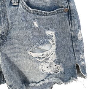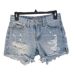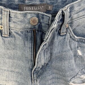 Just USA Small Jean Shorts Mid-Rise Zip-Fly Distressed Rips Frayed Hems Blue