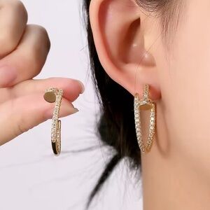 This stunning earrings features a luxurious blend of gold and silver tones, perfect for adding a touch of elegance to any outfit. The intricate design is both modern and timeless, making it a versatile addition to your jewelry collection.