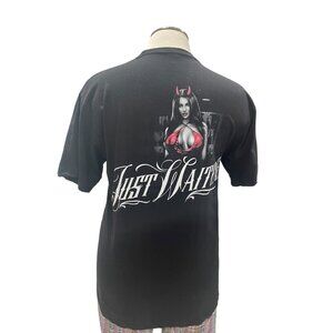 "Just Waiting" Graphic T XL Gothic Classic Festival Rock Concert Skateboard Bold