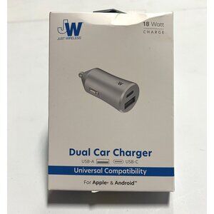 Just Wireless 3.4A Dual Port USB-A and USB-C Car Charger Gray