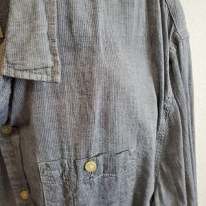 Long sleeve thinner blue gray chambray mens casual button up shirt. Gently preloved condition. Please request any measurements you may need