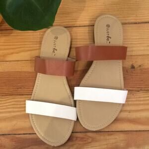 Just be Two Strap Sandals Two Toned Tan White Slip on Sandals Women's Size 10