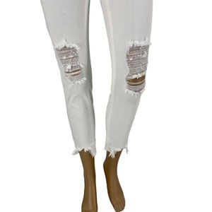 Just black Cora crop raw chewed hem jeans 25 white distressed