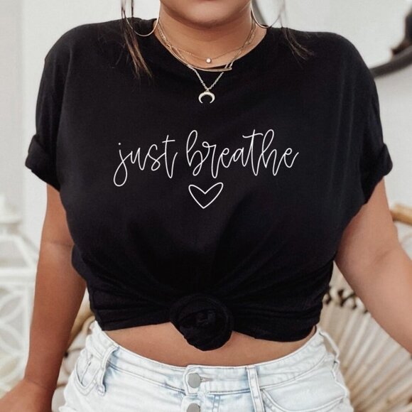 Just breathe graphic tee, kindness shirt, botanical shirt, womens Inspirational Shirt, Motivational Shirt, Gift for her, plus size