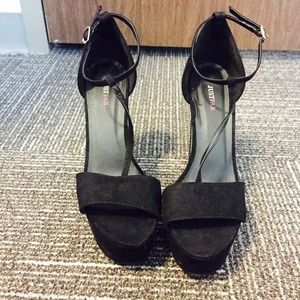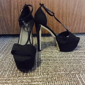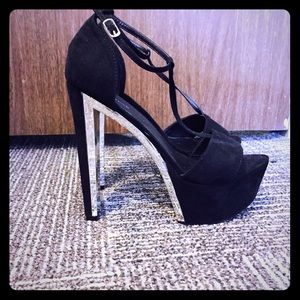 Perfect black platform heels with a shiny , metallic silver base. Very sexy high heels , perfect for a night out. Never worn. See previous picture for what they look like on. Also purchase with previous picture