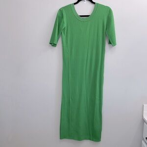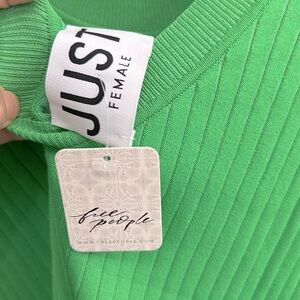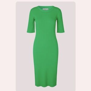 JUST female, rib knitted dress made from a viscose and nylon blend. The dress is tight fitting, midi-long with long sleeves, high neck, and a deep back. A dress that can easily be used on festive occasions or over trousers in the everyday.