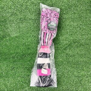 The driver head cover is styled with a diagonal stripe to complement the look of your club with a pink and white oversized pom pom. Its perfectly knitted with spandex for a better fit. The head has an acrylic double layer intarsia construction and 2x2 rib shaft to protect your clubs.