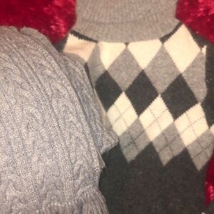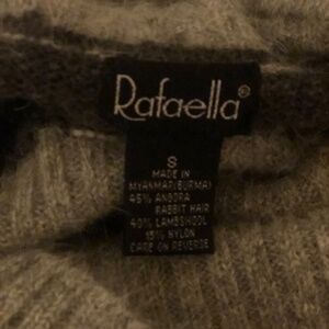 This Beautiful Gray warm sweater set is sure to please this winter. Sweater is a Rafaella gray argyle print with a big turtleneck to keep your neck warm in a really nice gray and white. Sweater is a 45 Angora 40 Lambswool and 15 nylon blend. Sweater measures 22 inches long. Shoulder to Shoulder is 16 and bust measures 36. This sweater is fuzzy beautiful and soft. I’ve included a beautiful long braided gray scarf from charter Club for Macys in gray as well it is a 70 Acrylic 30 wool blend perfect to keep you warm. Scarf is a wonderful 60 inches long. Great pieces in Excellent condition Treat Yourself 😊 Thank you