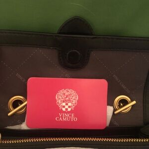 Holiday price drop tag Vince Camuto Fenel leather black and gold crossbody bag