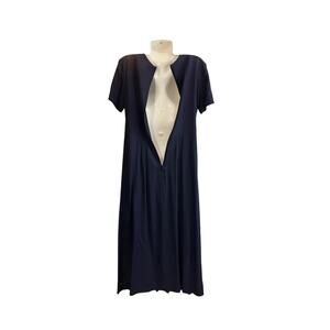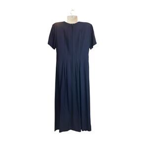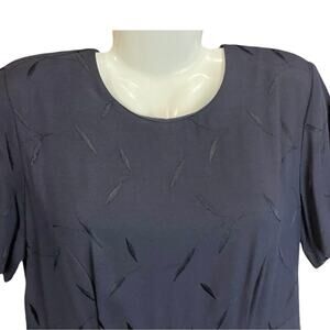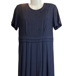 Just in Thyme Women's Navy Embroidered Pleated Short Sleeve Back Zip Dress Sz 8