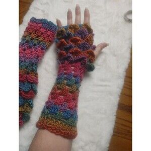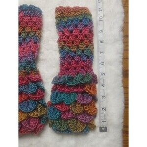 Brand New! 100% handmade by me! Made with super soft high quality 100% acrylic yarn, these are buttery soft fingerless gloves crocheted in a dragon scale pattern. These gloves are so popular right now! They leave your fingers free for texting or typing! The dragon scale pattern goes all the way around the hand portion. Spoil yourself and make a statement! The color is so beautiful in person, it's just so vibrant! Color: Pastel rainbow! These are a bit longer than other sets, as they have an extra row at the end. I highly recommend washing by hand although they can be machine washed and air dried. Smoke free, pet friendly home. Stored sep. Price is Firm on handmade items, even when bundled. Thanks for looking and understanding