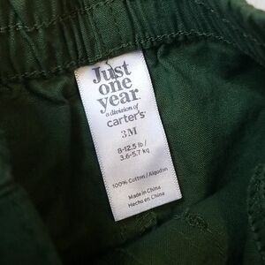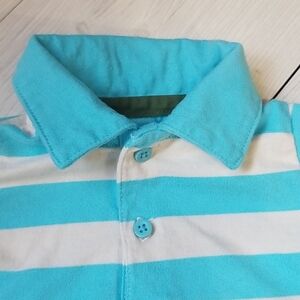 Just one year blue white stripe collared shirt/green short set 3 mo