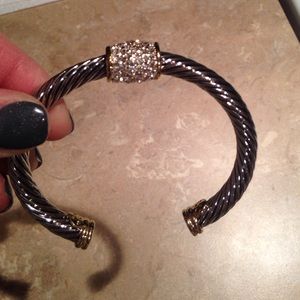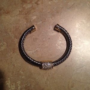 Silver and gold with crystals- slip on bracelet. Has a. Great weight to it.