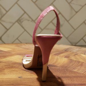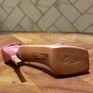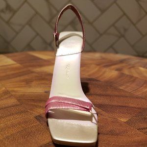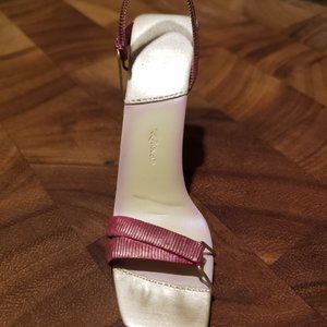 Step into elegance - features a golden toe and tiny gold strap with elegant cranberry-colored ribbons that wrap your toe and heel.