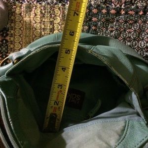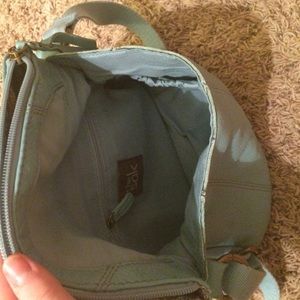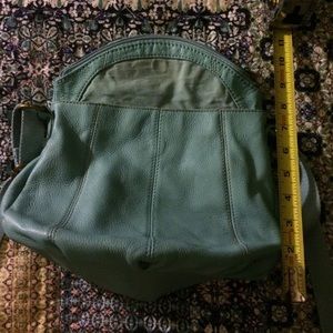 This is a turquoise body bag the brand is "The Sak" highly expensive. Haven't used it very much just wasn't what I wanted, it's comfy on the shoulder. Leather has no stains, no rips, no nothing. OBO