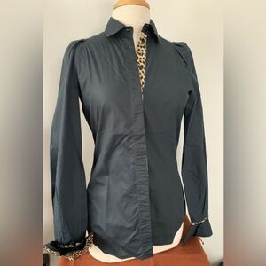 Black leopard print button down Cotton shirt in excellent condition slim fit