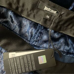 Just Cavalli Blue Metallic Velvet Wide Trousers Pants Size 38 or XS NWT