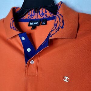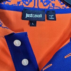 Just Cavalli Orange Polo with Navy Accents Size Large