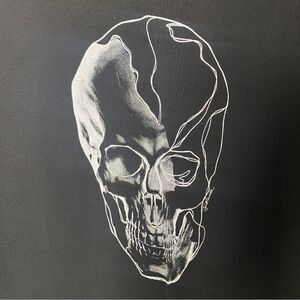 black sweatshirt with white skull graphic on front