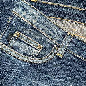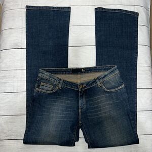 Good, preloved condition. Just Cavalli Denim Boot Cut Jeans Medium Wash Whiskering.