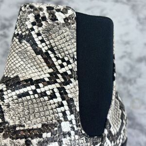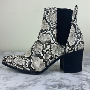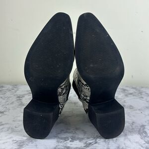 JustFab Rae Black White Bone Snakeskjn Pointed Toe Wedge Heel Pull On Bootie