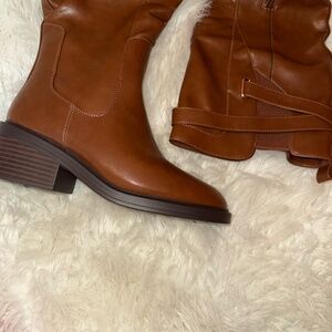 New in the box. Color is a brown shade. Has a true to size fit. Does have side zippers. Short heel. Buckle detail. ❌NO TRADES❌