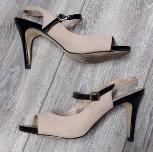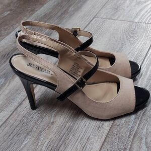 JustFab Adrian Black and Nude Slingback Heels Sz 8