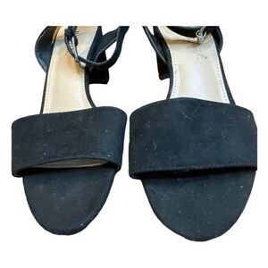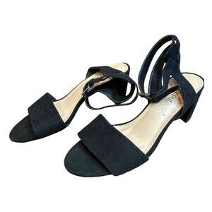JustFab Ankle Strap Sandals Black Faux Suede Block Heel Open Toe 9.5