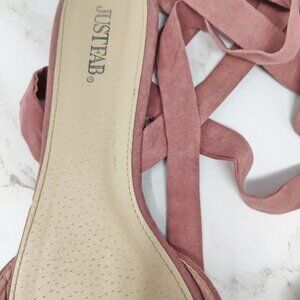JustFab Ankle Tie Flats - Size 7.5 (Dusty Pink, Well Worn)
