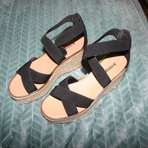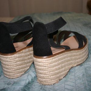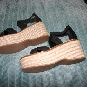 Stylish black espadrille wedges. Crisscross strap design. Comfortable and chic. Never wore myself but bought off here, slight wear pictured