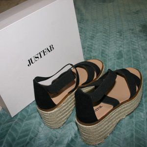 JustFab Black Espadrille Wedges
