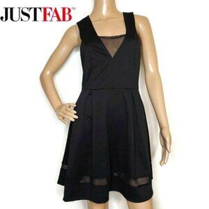 JustFab Black Mesh Panel Fit & Flare Dress size small little black dress LBD