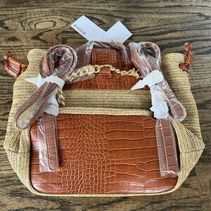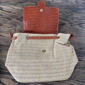 JustFab Cream And Cognac Beach Straw Shoulder Bag/Backpack NEW