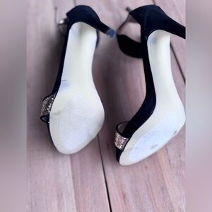 JustFab Elegant Black Heels with Gold Sequin Straps
