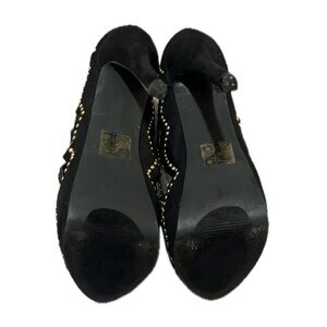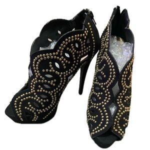 JustFab Elegant Suede Black and Gold Ankle Boot Women's Heels, Size 8